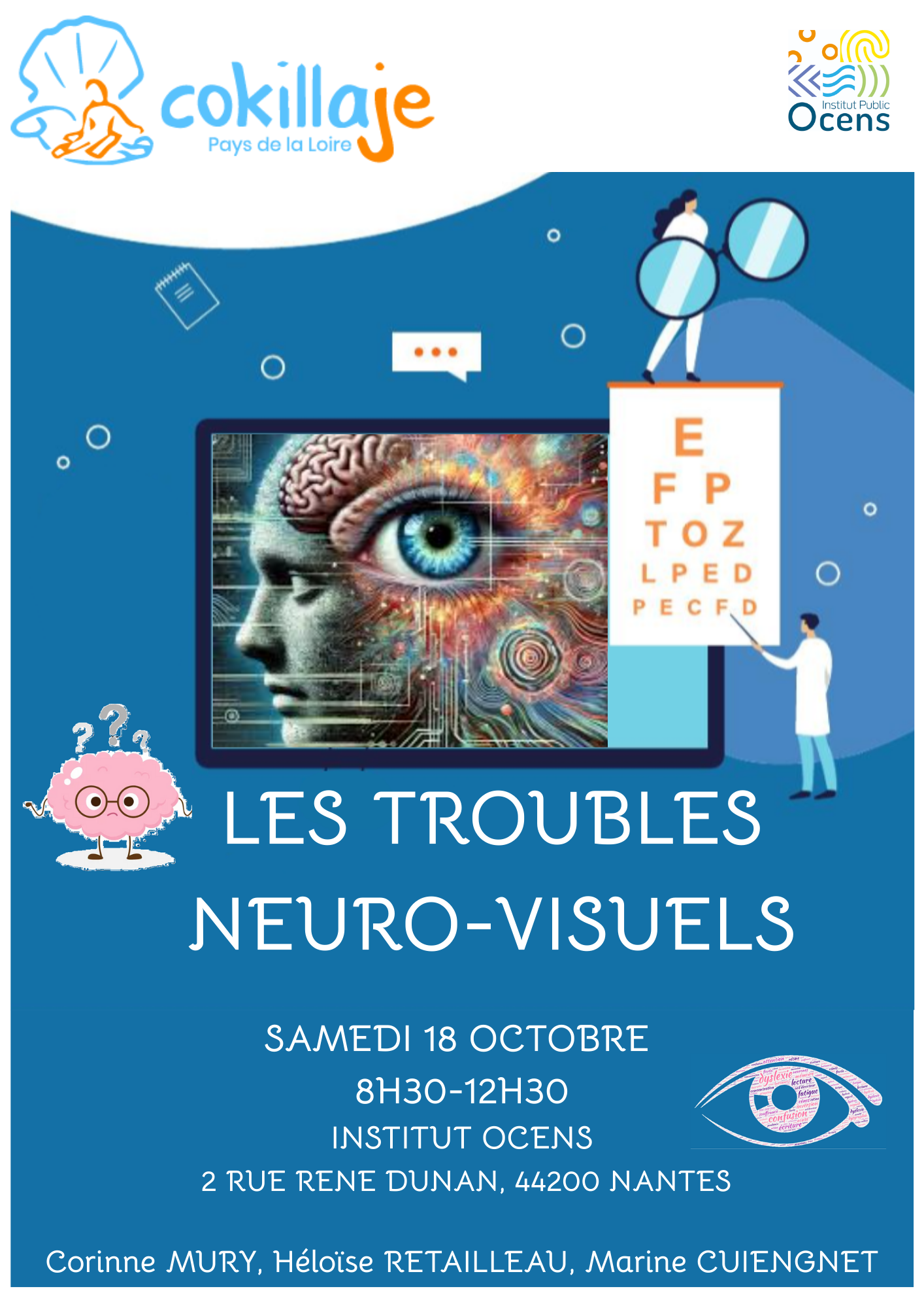 Cokillaje vous propose une matinée sur les troubles neuro-visuels le samedi 18 octobre à l ‘institut Ocens ( 2 rue Rene Dunan, 44200 Nantes) de 8h30 à 12h30.